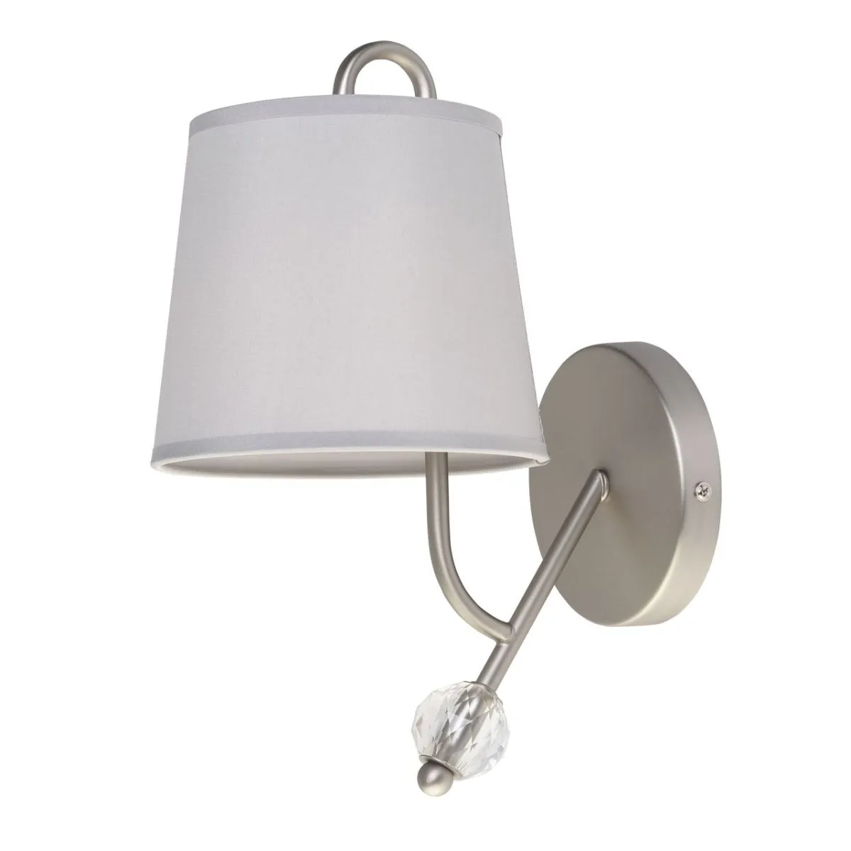 Основание/ металл/ перламутровое серебро Абажур/ текстиль, акрил/ серый, прозрачный Декор/ хрустал