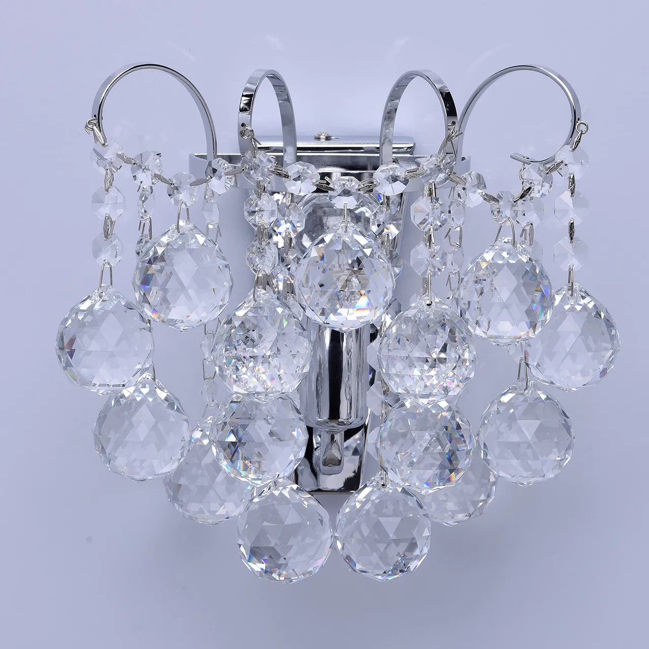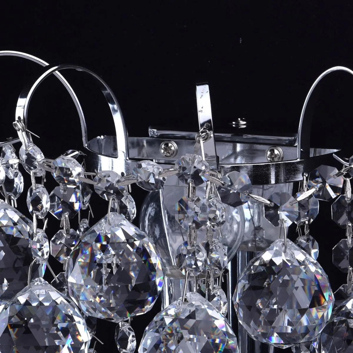 Металлическое основание цвета хрома, декоративные подвески из хрусталя