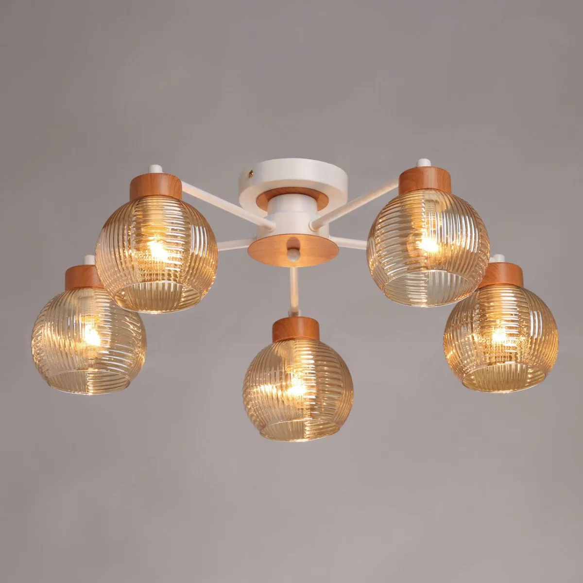 Основание/ металл/ белый Плафон/ стекло/ коньяк Декор/ металл/ имитация светлого дерева