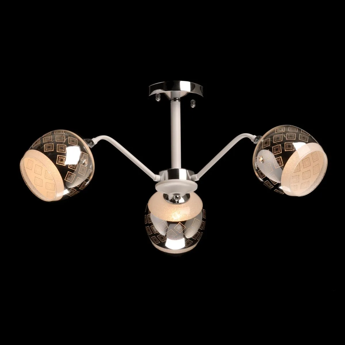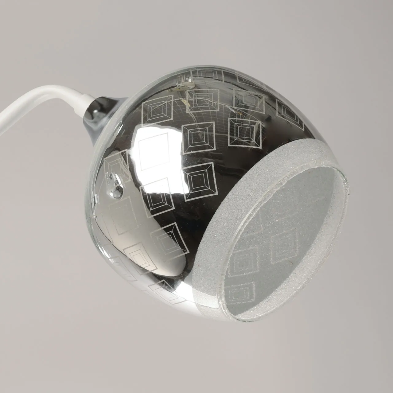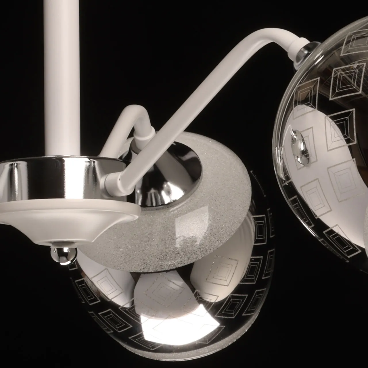 Основание/ металл/ белый, хром Плафон/ стекло/ белый, дымчатый Декор/ стеклянная крошка/ белый