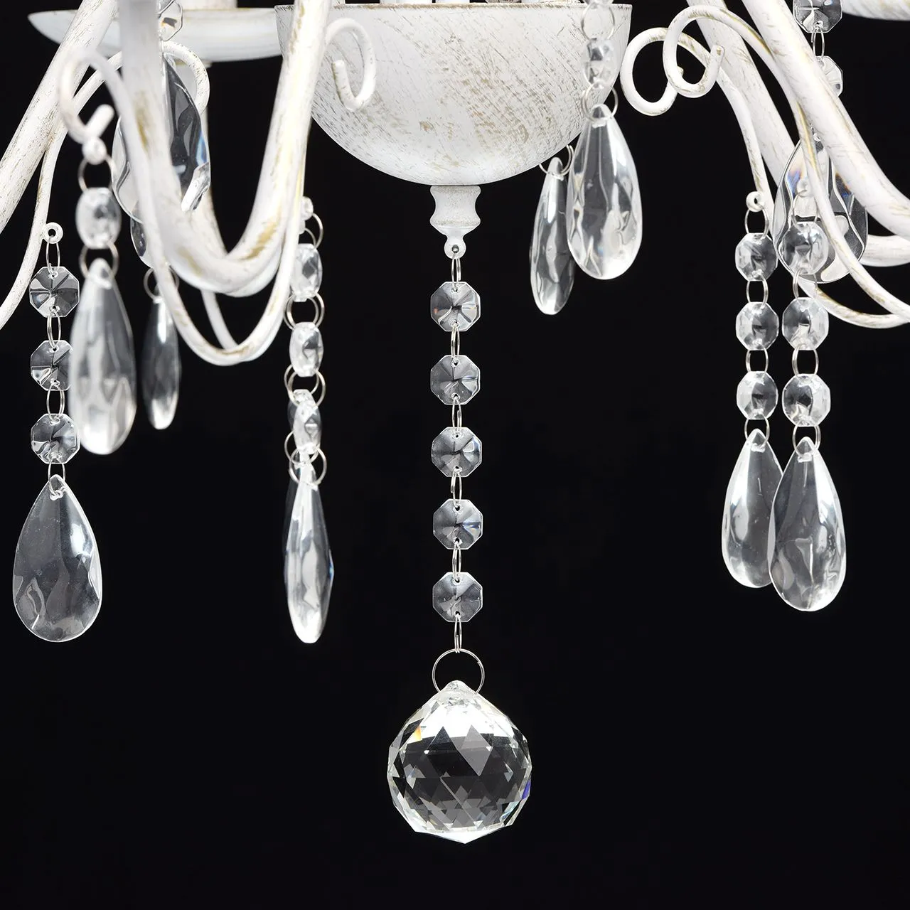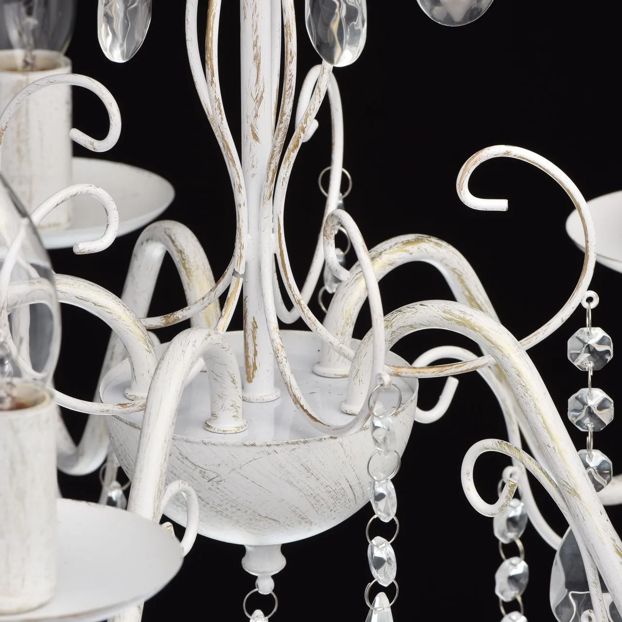 Металлическое основание белого цвета с золотистой патиной. Декор: декоративное стекло.