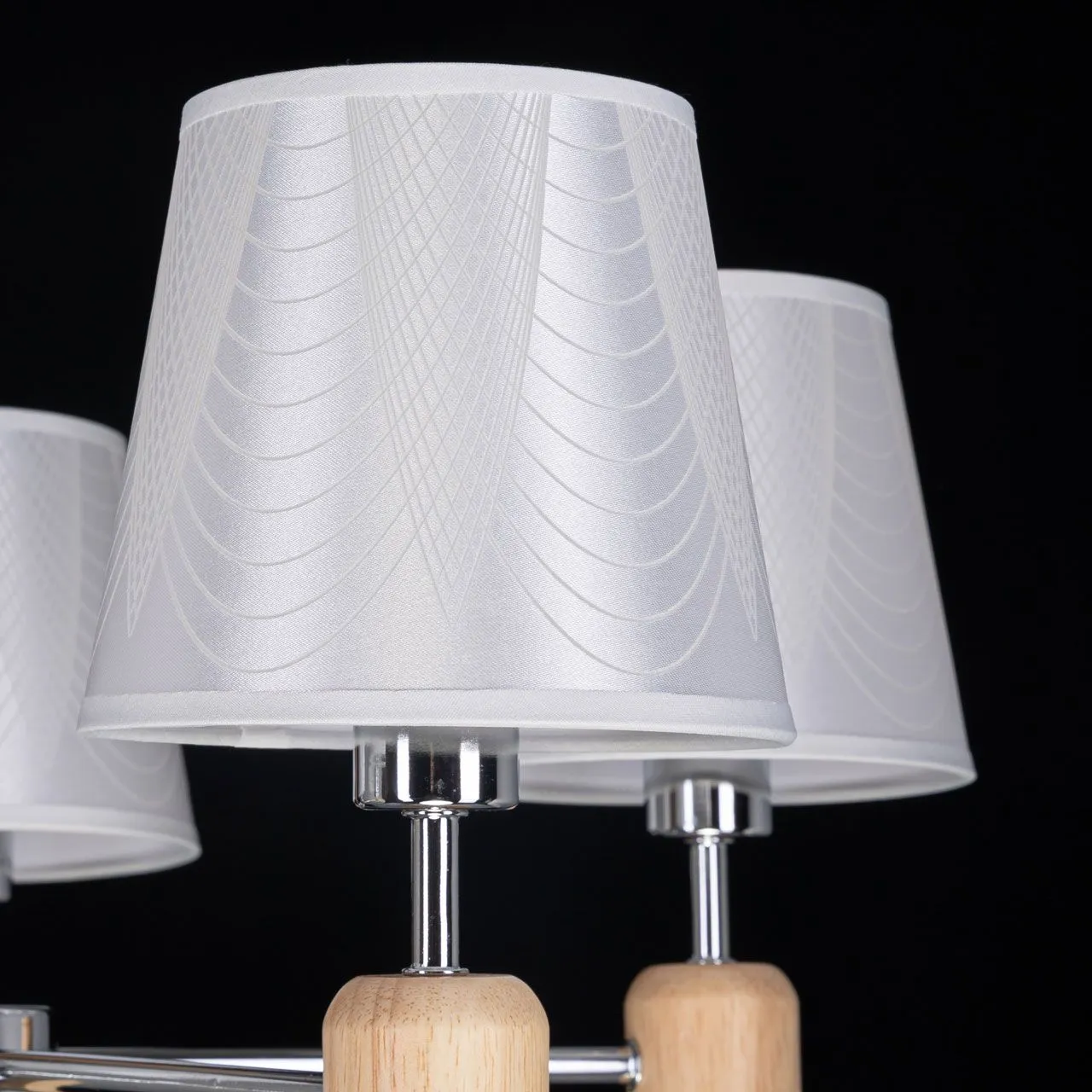 Основание/ металл/ хром Абажур/ текстиль, акрил/ белый, прозрачный Декор/ дерево/ натуральный