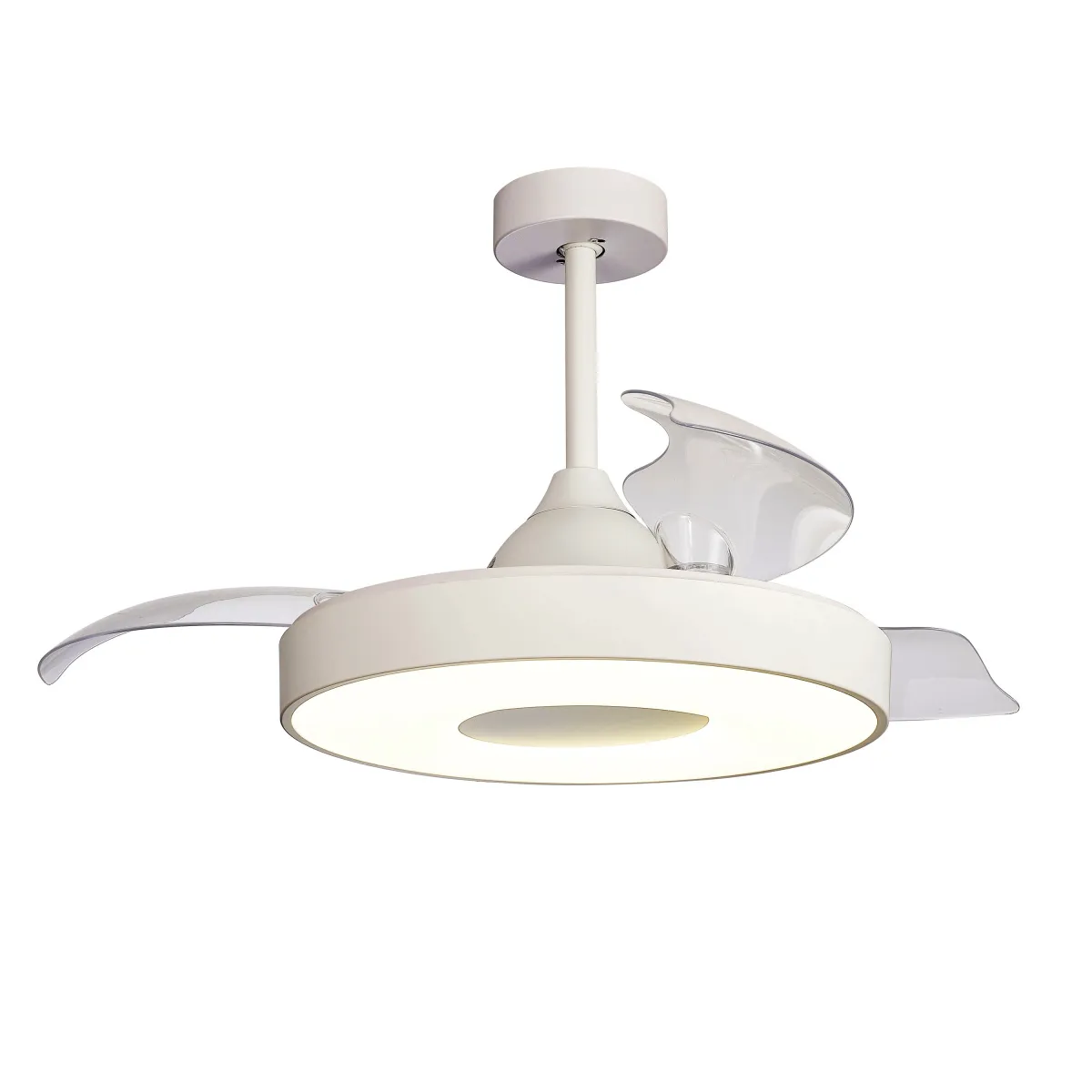 С помощью пульта пользователь может управлять яркостью и цветовой температурой освещения, скоростью вращения вентилятора, а также открывать или закрывать лопасти.