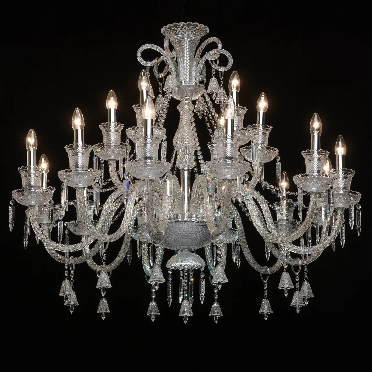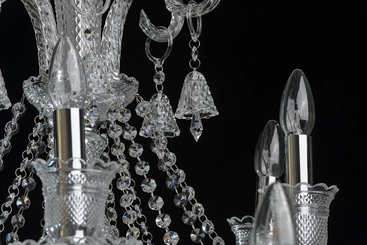 Металлическое основание цвета хрома, декоративные элементы из стекла и прозрачного хрусталя