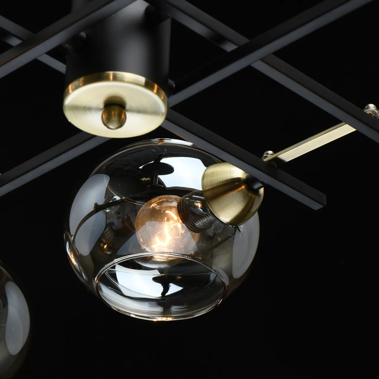 Основание/ металл/ черный, античная латунь. Плафон/ стекло/ шампань