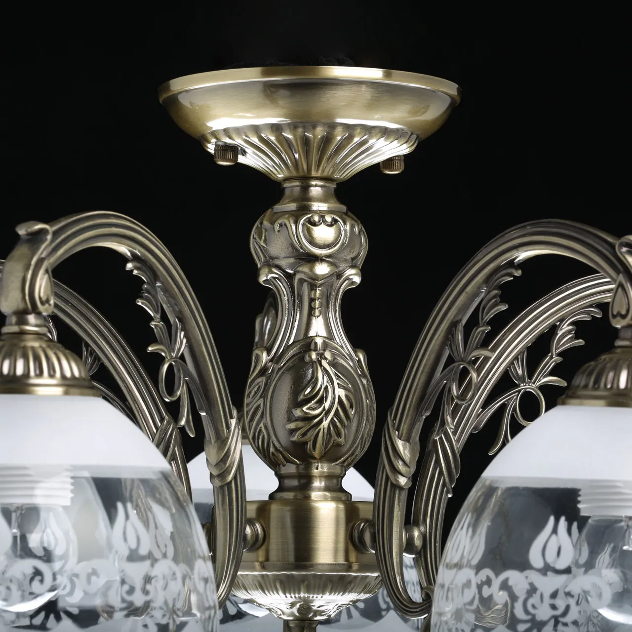 Основание/ металл, сплав алюминия с цинком/ античная бронза Плафоны/ стекло/ матированное, прозрачн