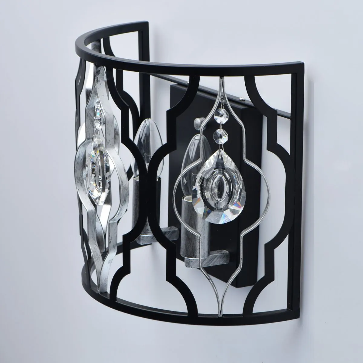 Основание/металл/черный и серебро. Декор/прозрачный хрусталь
