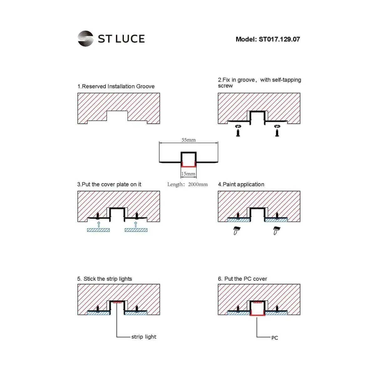 Профиль встраиваемый с рассеивателем ST-Luce ST017.129.07